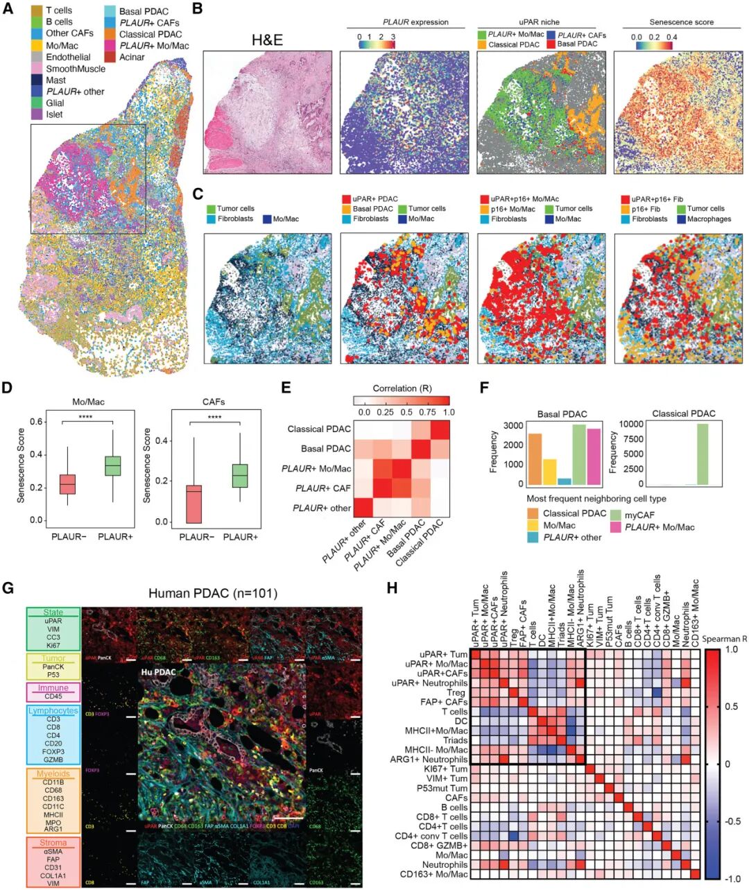 uPAR阳性肿瘤细胞、CAF与髓系细胞构成一个纤维化、免疫抑制性生态位