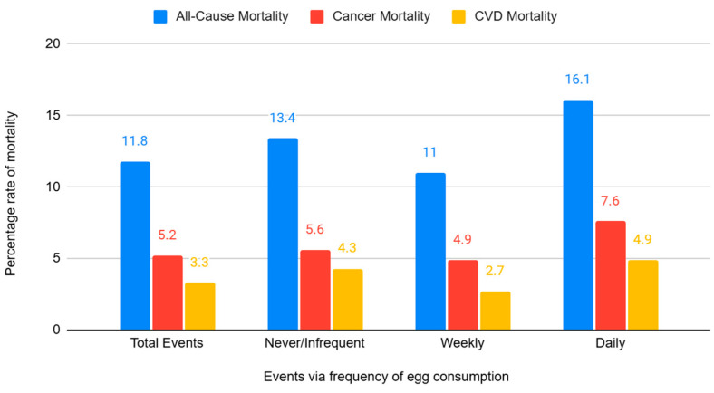 图1:全因死亡率和特定原因死亡率、总死亡率和食用鸡蛋的频率
