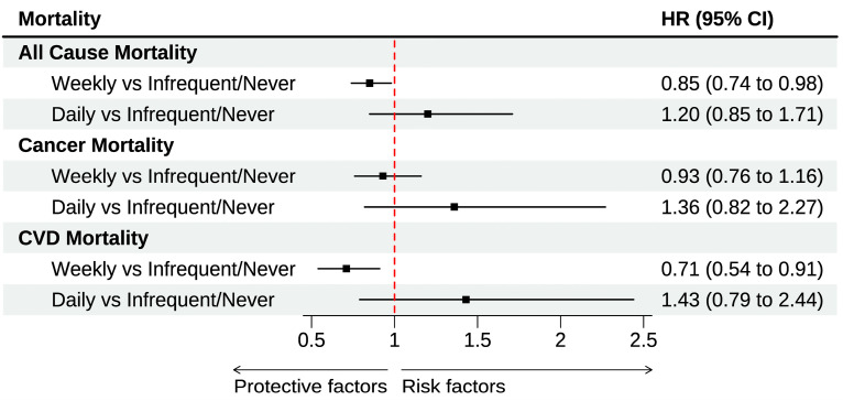 图2:鸡蛋消费与社区老年人全因死亡率和特定原因死亡率之间的关联