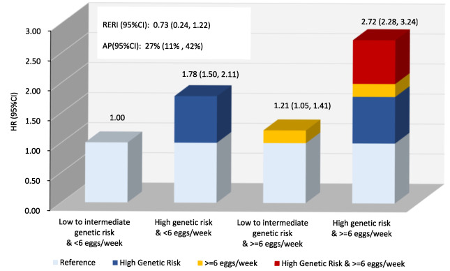 图3:鸡蛋消费与与CAD事件相关的遗传风险之间的加性相互作用