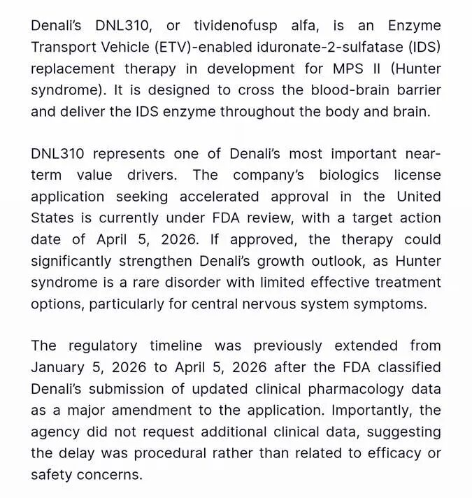 近日,FDA正式批准Denali Therapeutics的Avlayah,用于治疗亨特综合征,也就是黏多糖贮积症Ⅱ型。就在此前不久,Regenxbio的基因疗法RGX-121在同适应症上收到完整回复函,审评进程受阻。这将是美国FDA批准的首个利用转铁蛋白受体介导技术穿过血脑屏障的酶替代疗法,Denali解决了酶替代疗法二十余年来的核心难题——无法穿越血脑屏障。通过转铁蛋白受体介导的胞吞作用,该技术首次实现了对中枢神经系统症状的有效干预,将治疗维度从维持生命提升至保护大脑。亨特综合征因为缺少IDS这种酶,糖胺聚糖在细胞里不断堆积。传统的酶替代疗法,比如2006年上市的Elaprase,已经证明能清除外周器官的糖胺聚糖,改善心肺功能和关节活动度,但它有个致命的短板,就是穿不过血脑屏障。对大概七成会出现神经系统症状的患者来说,这意味着身体虽然得到了治疗,大脑却还在持续被侵蚀,最终智力退化、癫痫发作,很多孩子活不过15岁。Avlayah把IDS酶和经过工程改造的抗体Fc段融合在一起,利用转铁蛋白受体介导的胞吞作用,把药物运进大脑。发表在《新英格兰医学杂志》上的1/2期临床数据显示,这种设计产生了立竿见影的效果:患者脑脊液里的硫酸肝素水平比治疗前下降了91%,尿液里下降了88%。从临床角度看,这个数据是革命性的,在此之前还没有任何一种通过静脉给药的疗法能这么彻底地清除中枢神经系统里的毒素。这种生物标志物的降低转化成了实际的临床获益。在长达153周、差不多三年的随访中,患者的适应性行为,也就是通过文兰适应行为量表评估的结果,不仅没有像预期那样下降,反而保持稳定甚至有所改善。对于这种进行性的神经退行性疾病来说,这已经可以被看作是疾病修饰疗法的证据。Avlayah的获批,本质上是对Denali核心平台,也就是Transport Vehicle技术的全面验证。过去几十年,生物技术领域攻克中枢神经系统疾病最大的痛点就是递送。不管是抗体、酶还是基因编辑工具,大分子药物进入大脑的比例通常不到0.1%。Denali的TV平台没有选择风险更高的脑室内注射或者鞘内注射,而是坚持静脉给药,通过对抗体Fc段进行精准改造,让它跟血脑屏障上高表达的转铁蛋白受体结合。2025年9月发表在《Science》上的一项研究进一步解释了这一机制:通过调整抗体与转铁蛋白受体的亲和力,可以实现一种打孔的效果,既保证足够的转胞吞作用,又避免因为亲和力太高导致药物卡在血脑屏障的内皮细胞里被降解。目前在Denali的管线里,用这项技术治疗Sanfilippo A型,也就是黏多糖贮积症ⅢA型的DNL126,以及治疗庞贝病的DNL952等项目都在推进中。Avlayah的成功为这些项目提供了明确的风险降低依据,只要搭载TV平台,能不能入脑将不再是FDA质疑的风险点,而是这类产品的标准属性。把这次批准放在一个月前Regenxbio遭遇滑铁卢的背景下看,2026年1月,FDA不仅因为安全性问题暂停了Regenxbio的另一个溶酶体贮积症项目,还对其治疗亨特综合征的基因疗法RGX-121实施了临床暂停。虽然Regenxbio辩称产品安全性良好,但FDA显然对AAV基因疗法的插入突变风险以及长期随访数据不足存在顾虑。同样是解决中枢神经系统的问题,为什么Avlayah能胜出?有几个关键区别。一是风险收益比的权衡逻辑不同。基因疗法理论上是一劳永逸的,但它涉及基因组整合,一旦发生不良事件,比如肿瘤,在孩子身上是不可逆的。而Avlayah作为酶替代疗法,虽然需要每周输注,但本质上是蛋白质替代,即使出现不良反应,停药即可,风险可控性远高于基因疗法。在FDA看来,对于一个平均寿命只有15岁的患儿群体,每周输注的负担虽然沉重,但比脑瘤风险带来的未知恐惧要小得多。二是生物标志物的证据链强度。据行业分析,Denali在提交给FDA的资料里,并不只是依赖单一的硫酸肝素检测。跟Regenxbio相比,Denali提供了多种形式硫酸肝素的详细分析,还展示了长达四年的随访数据。这种多维度的生物标志物证据,构建了一条从药物入脑到底物清除,再到神经标志物改善,最后到认知稳定的完整逻辑链。这正好是FDA加速审批所需要的合理可能预测临床获益的证据。FDA在2026年2月刚刚发布了针对超罕见病的合理性机制路径的草案指南。这个框架,对于那些没法做大规模安慰剂对照试验的疾病,只要能基于坚实的科学机理和可靠的生物标志物数据,就可以批准上市。Avlayah的批准虽然主要基于此前的1/2期数据,但审批节奏跟这个新理念非常契合。FDA药物评估与研究中心代理主任表示,这次批准是基于替代终点。这表明特朗普新政府下的FDA正在把这种监管灵活性从口头承诺落实到实际行动。当然,这种灵活性也有代价。FDA给Avlayah贴的是加速批准的标签,这意味着Denali必须做上市后的确证性研究,如果到时候没能证明明确的认知获益,FDA保留撤回适应症的权利。药价和政策激励是罕见病领域绕不开的话题。Denali公布的定价是每支150毫克的小瓶5200美元。因为这是酶替代疗法,按体重给药,随着孩子体重增加,年治疗费用会大幅上涨。从商业角度看,这个定价处在合理区间。现有的亨特综合征疗法每年的治疗费用通常在20万到40万美元之间,Avlayah作为第一款有中枢神经系统疗效的升级版产品,有明显的临床溢价空间。而支付方,也就是医保,关注的是如果用了Avlayah能保住孩子的认知功能,从而省掉长期护理机构的费用,这笔账是否划算。考虑到有神经系统症状的孩子如果不治疗,生命