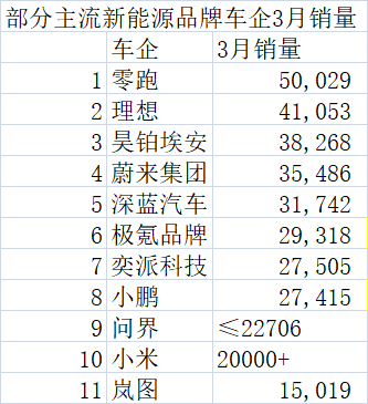 3月新势力车企销量强势反弹