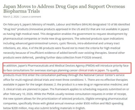 亚太CRO市场正在以前所未有的速度扩张。根据The Insight Partners的数据,2024年这一市场规模已达117.7亿美元,预计到2031年将增长至212.4亿美元,年均复合增长率高达8.8%。这意味着,未来几年将有近百亿美元的增量蛋糕等待分食。2026年2月,日本厚生劳动省和PMDA(医药品医疗器械综合机构)推出了一项极具针对性的新政:为海外生物科技公司进入日本开展临床试验设立“一站式服务窗口”(ENSEMBLExJ),并与PMDA联动,提供优先咨询通道。图源:pacificbridgemedical这意味着什么?过去,一家美国Biotech想进入日本,得先花钱请咨询公司翻译资料、解读法规、对接机构,流程走完大半年过去了。现在,日本政府亲自下场当“向导”,把门槛一降再降。这还不是全部。2026年1月,日本政府批准了总额3300亿日元(约合21亿美元)的扶持计划,其中200亿日元专门用于支持罕见病的全球临床试验。对于资金链紧绷的海外Biotech而言,这笔钱足以改变“来不来日本”的天平。图来源:pharmaceutical-tech回过头来看EPS的打法,逻辑就清晰了:它打的不是价格战,而是“政策红利+快速度+全链条服务”的组合拳。在很多人的认知里,日本审批准备慢、启动慢,是块难啃的骨头。2026年1月发表于《Clinical and Translational Science》的一篇论文,对日本早期临床试验的启动速度进行了系统分析。研究发现:日本的临床试验启动速度已具备全球竞争力,甚至快于欧盟。2023年发表于PubMed的一项研究,对日本与全球Top10药企的临床试验入组速度进行了对比。数据显示:在I期肿瘤患者入组环节,日本本土药企的速度是5.5例/月,而全球Top10药企仅为1.8例/月——前者是后者的3倍。 即使在健康志愿者试验中,日本药企15.1例/月的速度,也明显快于全球巨头的12例/月。这意味着对于资金链紧绷、时间就是生命的海外Biotech而言,入组速度直接决定临床开发的周期和成本。当日本能够用更短的时间完成患者招募,它在全球早期临床试验的选址竞争中,就有了足够的筹码。人才之战