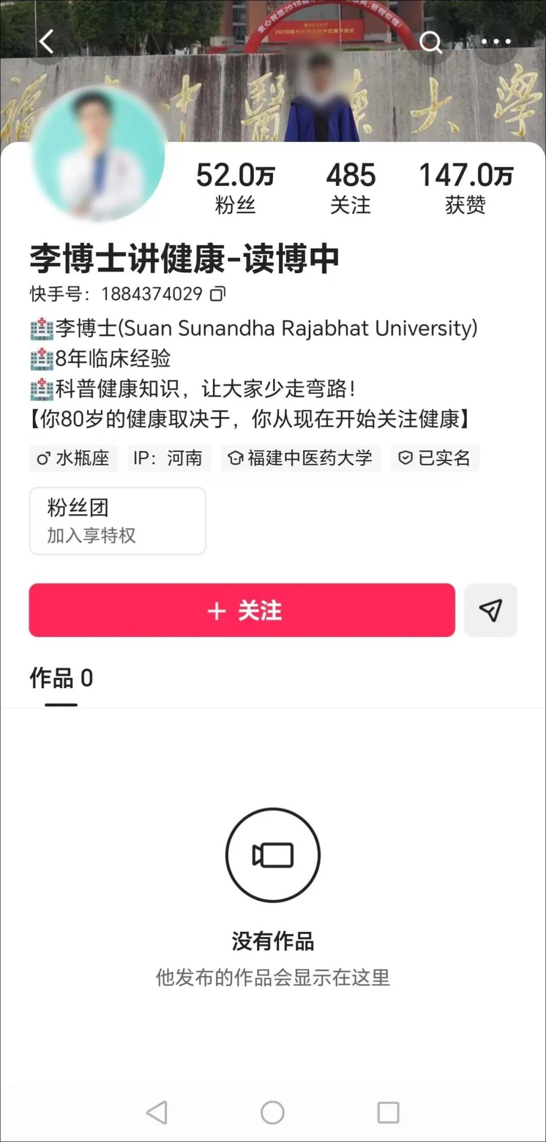 截止发稿,“李博士”在某短视频平台账号的既往作品已全部清空。