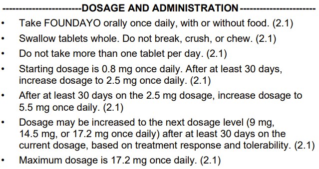 根据获批的说明书,Orforglipron起始剂量为0.8mg,至少30天后增加值2.5mg,再过至少30天增加值5.5mg,目标计量分别为9mg、14.5mg、17.2mg,具体根据治疗响应和耐受性确定。