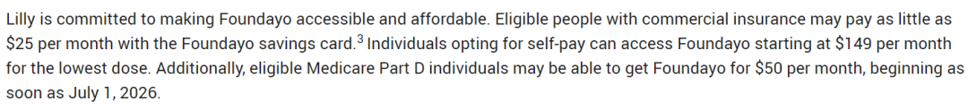 定价方面,有保险覆盖的患者使用礼来的优惠券后每月只需支付25美元,而自费患者根据剂量不同需支付149至349美元。