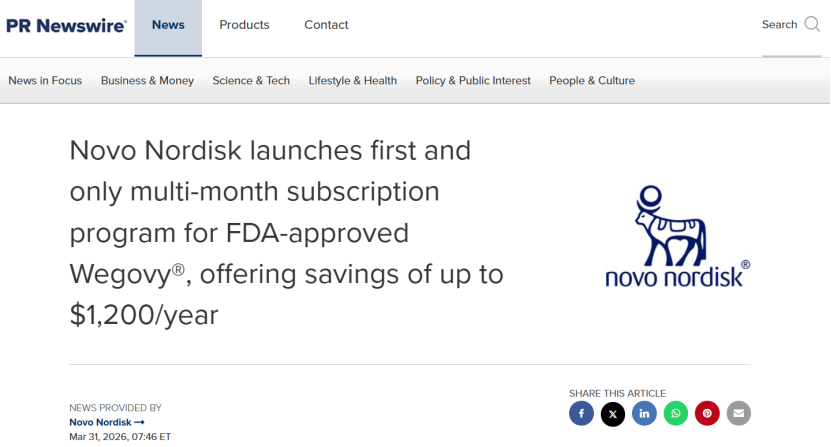 耐人寻味的是,礼来的Foundayo原定于4月10日正式获批上市,而诺和诺德选择在3月31日率先推出Wegovy的订阅服务,显然是有意抢在竞争对手登陆市场之前,通过价格锁定和用药便利性,提前“圈住”一批自费用户。