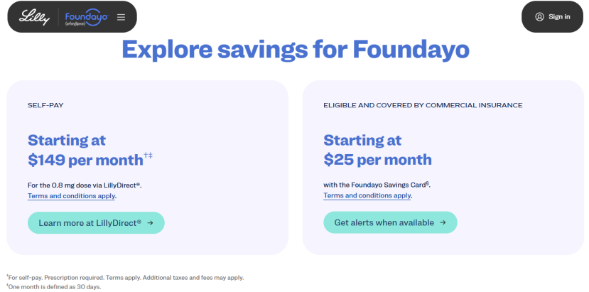 来源:礼来 Foundayo产品官网