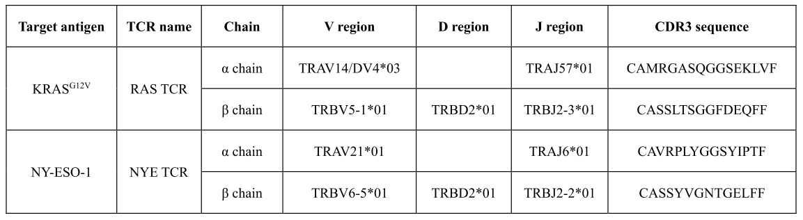 表S1 这里人类TCR汇总,这些TCR被用于生成分泌IFNα/抗PD-L1的TCR-T细胞