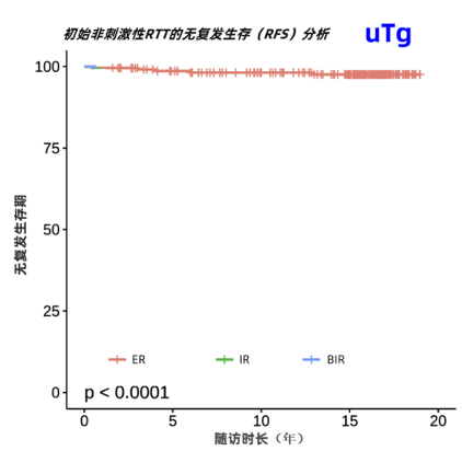 Byeong-Cheol教授团队发表的研究进一步发现,在基于抑制性Tg(uTg)分层认定为“极佳反应”的患者亚组中,若进一步采用sTg评估,仍可鉴别出一部分实际为“生化反应不完全”的患者(图3),提示sTg具有更高的敏感性,可减少潜在的风险低估。