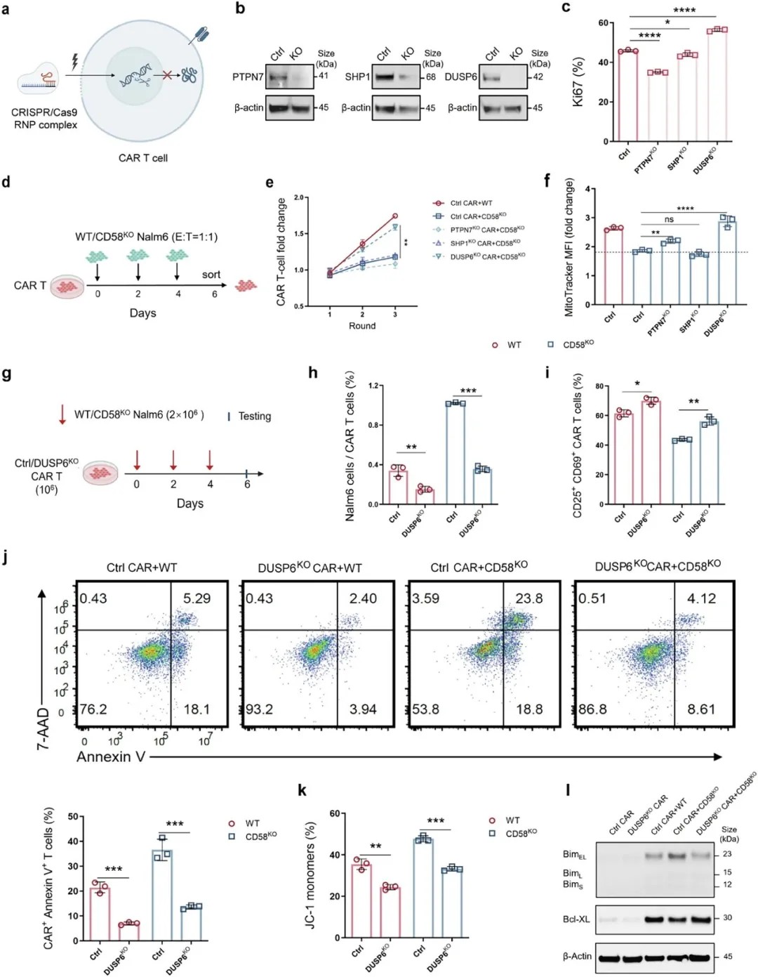 DUSP6的敲除通过增强功能激活、改善线粒体功能及抵抗凋亡,来减轻CD58缺失介导的CAR-T细胞疗法耐药