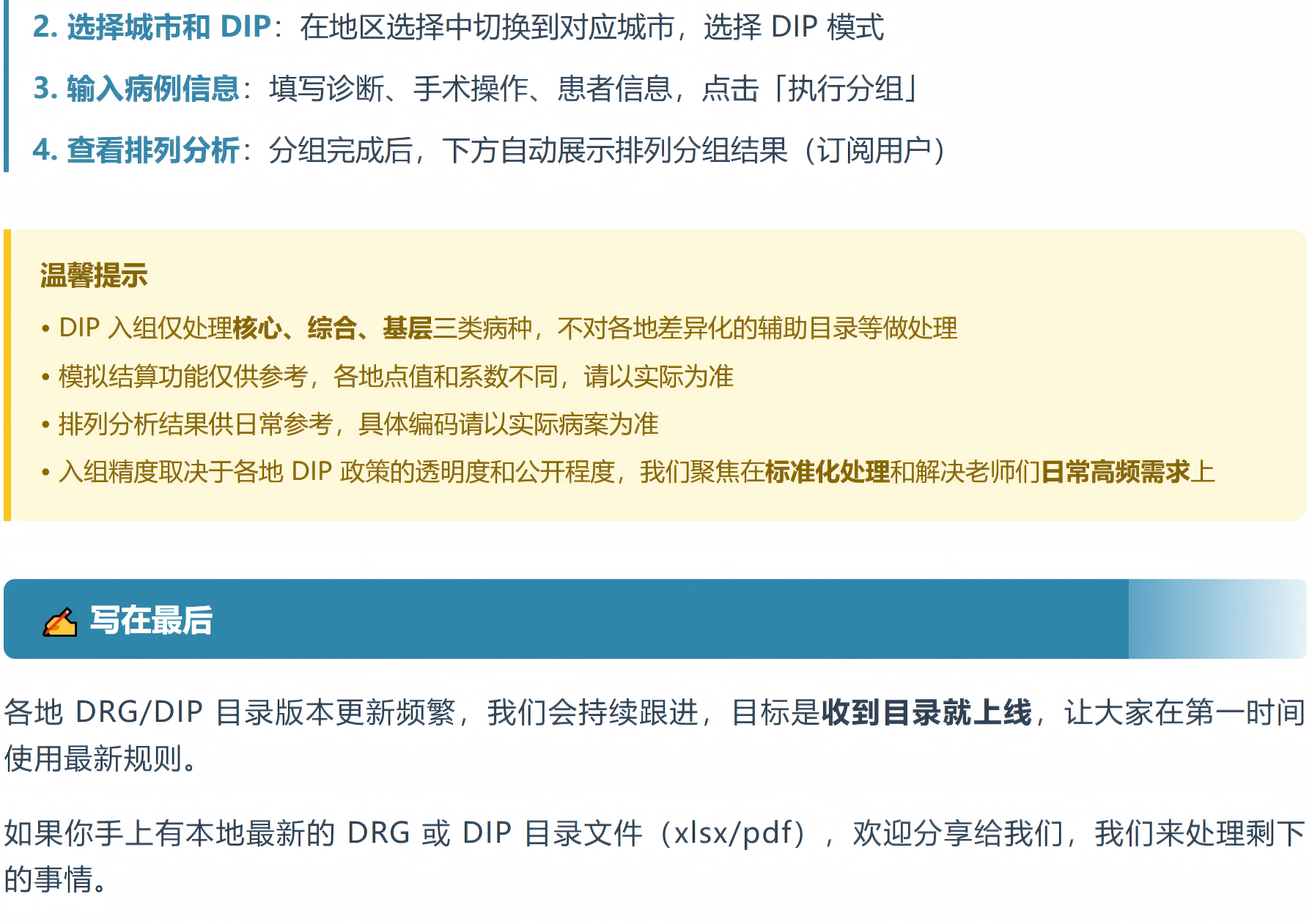 DIP 入组仅处理核心、综合与基层病种,模拟结算仅供参考,以各地实际政策为准。