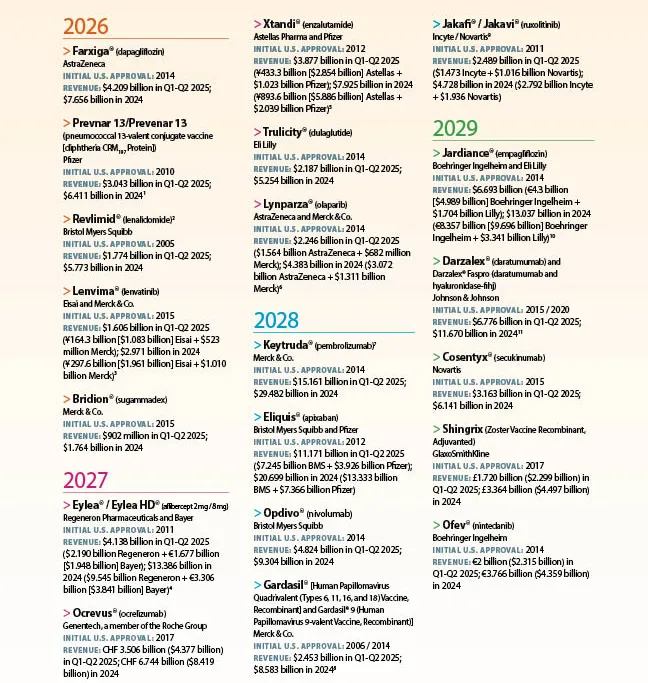 图1 2026-2029年即将面临专利悬崖的20款“重磅炸弹”药物