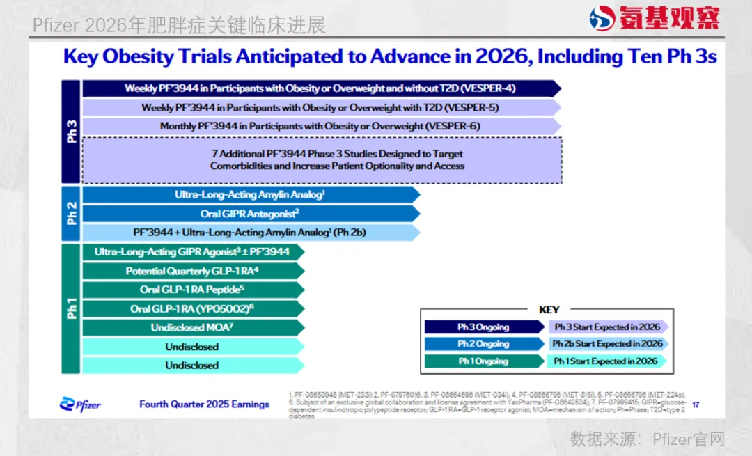与此同时,辉瑞也在加速全球市场卡位。2026年2月,辉瑞与中国药企先为达达成总金额4.95亿美元的合作,获得了ecnoglutide(埃诺格鲁肽)在中国大陆的独家商业化权益。