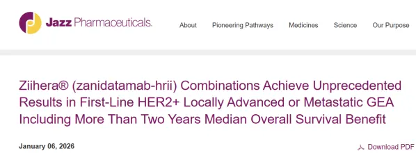 HER2靶点的变化则更多体现在药物类型上。过去一段时间,HER2研发的焦点主要集中在ADC;但2026年AACR传递出的新信号是,双抗路线开始真正成型。其中,泽尼达妥单抗(zanidatamab)作为一款双表位HER2双抗,其已获FDA加速批准用于既往经治HER2阳性胆道癌。HERIZON-BTC-01研究数据显示,其客观缓解率(ORR)达到52%,中位缓解持续时间为14.9个月。更重要的是,Jazz已在2026年初披露,HERIZON-GEA-01这项针对一线HER2阳性胃癌/胃食管腺癌的III期研究获得阳性结果,意味着该产品正加速向更大适应症拓展(图1)。也就是说,HER2竞争正在从ADC单一路径,逐步走向ADC与双抗并行的格局。