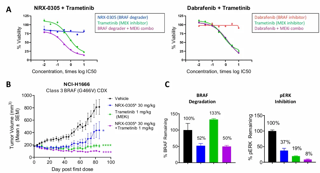 图3.NRX-0305在体外与MEK抑制剂协同作用