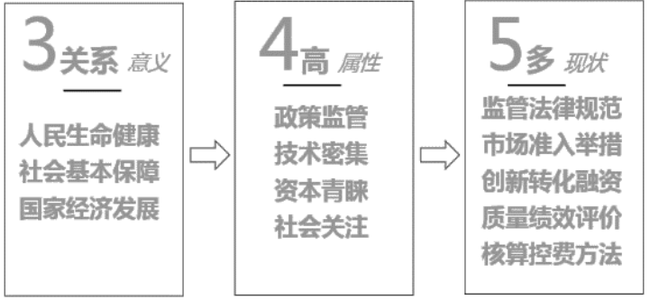 医疗器械,作为基础诊疗工具,关系人民生命健康;作为医疗费用高投入领域,关系社会基本保障;作为高技术产业,关系国家经济发展,综合意义较为重大。基于上述「三关」意义,医疗器械市场规模年增速突破20%,具备高政策监管、高技术密集、高资本青睐、高社会关注的「四高」属性,并进一步形成「五多」现状,即多个监管归口及规范,多套优先快速入市举措,多家产品技术转化融资,多种需方质量绩效评价机制,多项成本核算及控费方法。意义、属性、现状联动形成医疗器械市场格局,深刻影响着医疗器械需方医疗服务能力的提升,以及供方市场策略的形成。