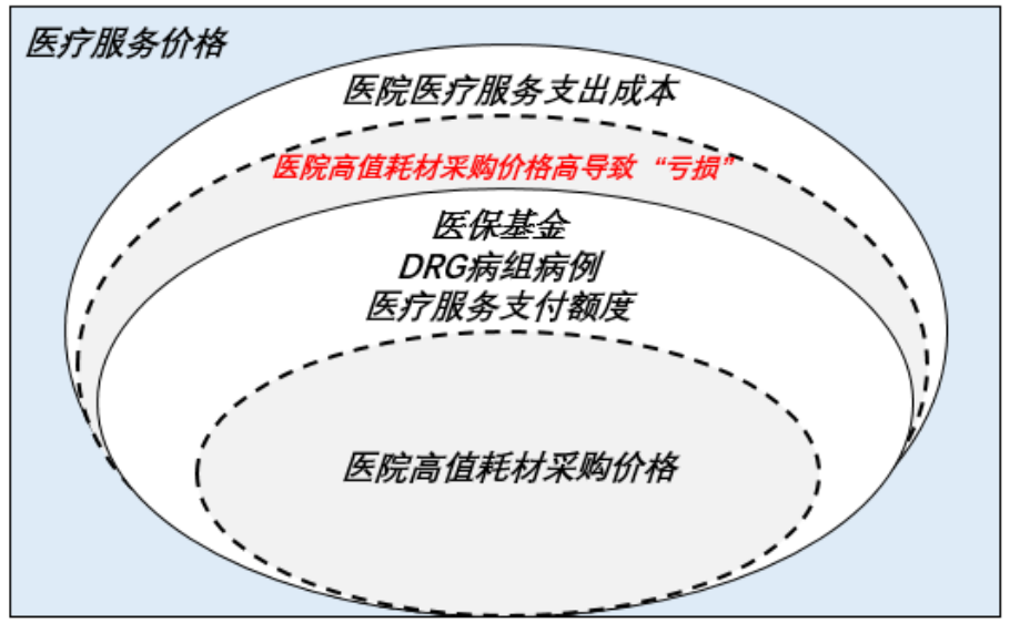 DRG机制下,医保基金用于补偿医院医疗服务支出成本,但补偿的充分性,受医院高值耗材采购价格影响较大(如图5所示)。