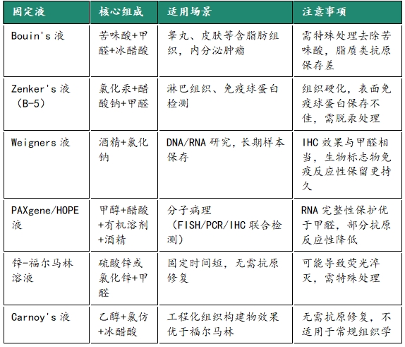 甲醛替代品多以醇类为基础,通过脱水和蛋白质凝固机制发挥作用,不同的配方适用于不同的研究场景。