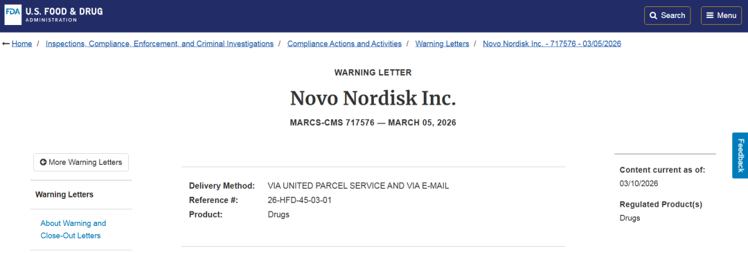 1.https://www.fda.gov/inspections-compliance-enforcement-and-criminal-investigations/warning-letters/novo-nordisk-inc-717576-03052026