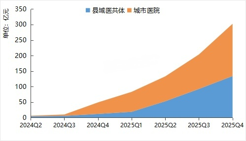 截至2025年底,我国医疗领域设备更新招标公告累计披露的303亿元采购规模中,县域医共体134亿元,占44.3%,城市医院169亿元,占55.7%。