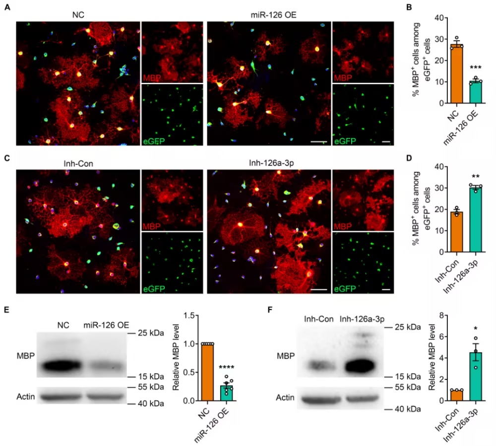 miR-126a-3p在体外作为OPC分化的负调节因子(图片源自