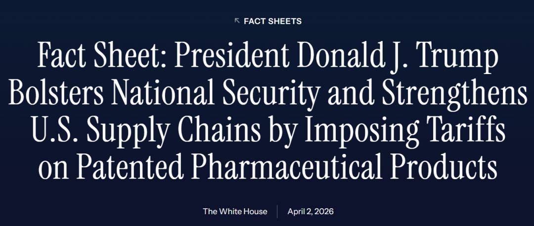 2026年4月2日,美国总统唐纳德·特朗普正式签署一项行政命令,依据《1962年贸易扩展法》第232条,对特定国家和制造商的进口专利药品及制药成分加征最高100%的关税,旨在推动药品生产本土化、降低药价并强化美国药品供应链安全。