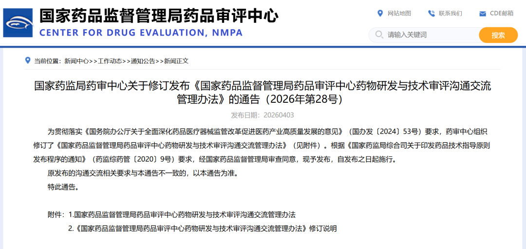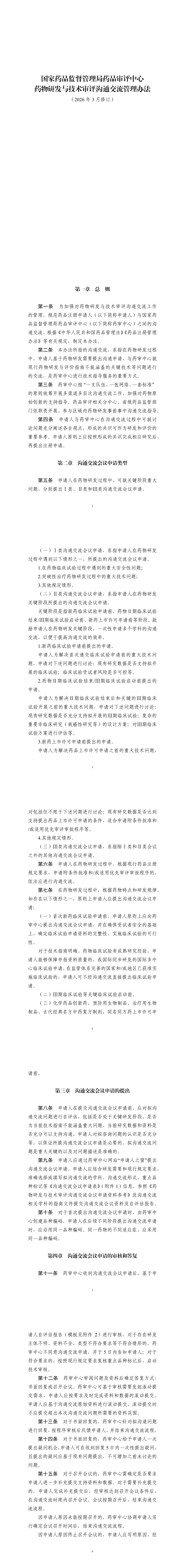 国家药监局药审中心关于修订发布《国家药品监督管理局药品审评中心药物研发与技术审评沟通交流管理办法》的通告(2026年第28号)