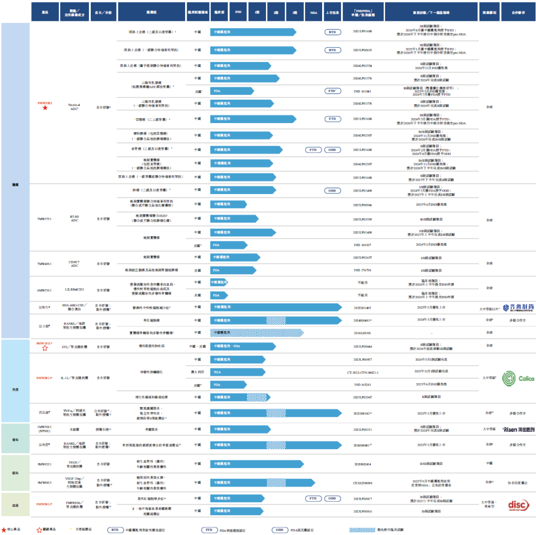 迈威生物成立于2017年,是一家以药物研发方面的创新能力以及从药物发现至商业化销售的端到端能力而闻名的制药公司。2022年1月,迈威生物在科创板挂牌上市,如今即将实现港股二次上市。9MW2821为迈威生物的核心产品,有望成为同类最佳的Nectin-4 ADC,单药治疗尿路上皮癌、联合PD-1抗体一线治疗尿路上皮癌均获得突破疗法认定,这两项适应症均处于三期临床阶段。此外,单药治疗宫颈癌也处于三期临床阶段。这三项临床将于今年进行期中分析,并据此递交新药上市申请前会议(pre-BLA)。此外,9MW281联合其他疗法一线治疗宫颈癌、联合其他疗法一线治疗子宫内膜癌的二期临床将于今年完成,随后将启动联合治疗的关键三期临床。9MW2821单药治疗三阴乳腺癌的三期临床也将在今年启动。