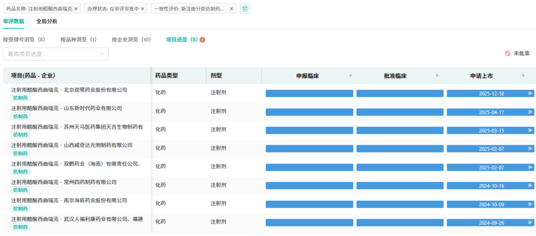 目前,注射用醋酸西曲瑞克在国内已有12家企业获批并过评,另有10家企业的上市申请正在审评中,市场竞争日趋激烈。