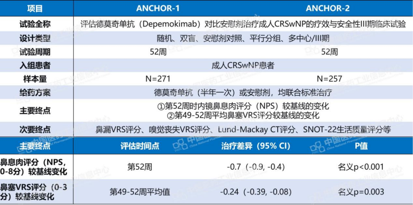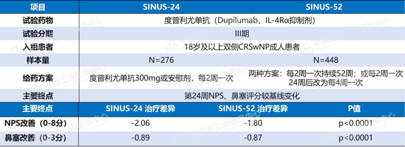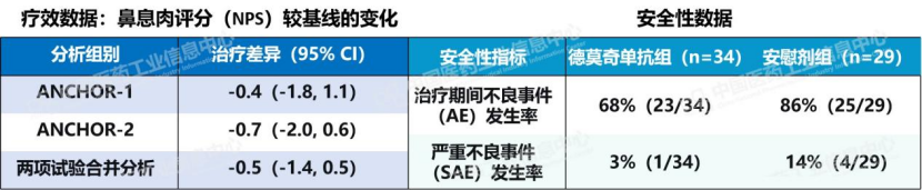 易适来®此次获批新适应症,基于ANCHOR-1和ANCHOR-2两项III期研究。主要终点方面,鼻息肉评分(NPS)较安慰剂改善约0.7分,鼻塞评分改善约0.24分。横向对比度普利尤单抗(IL-4R抑制剂)在SINUS试验中的数据:NPS改善约2分,鼻塞改善约0.8分。专业期刊Med曾评论:德莫奇单抗在该适应症上的临床获益较其他生物制剂“有限”。