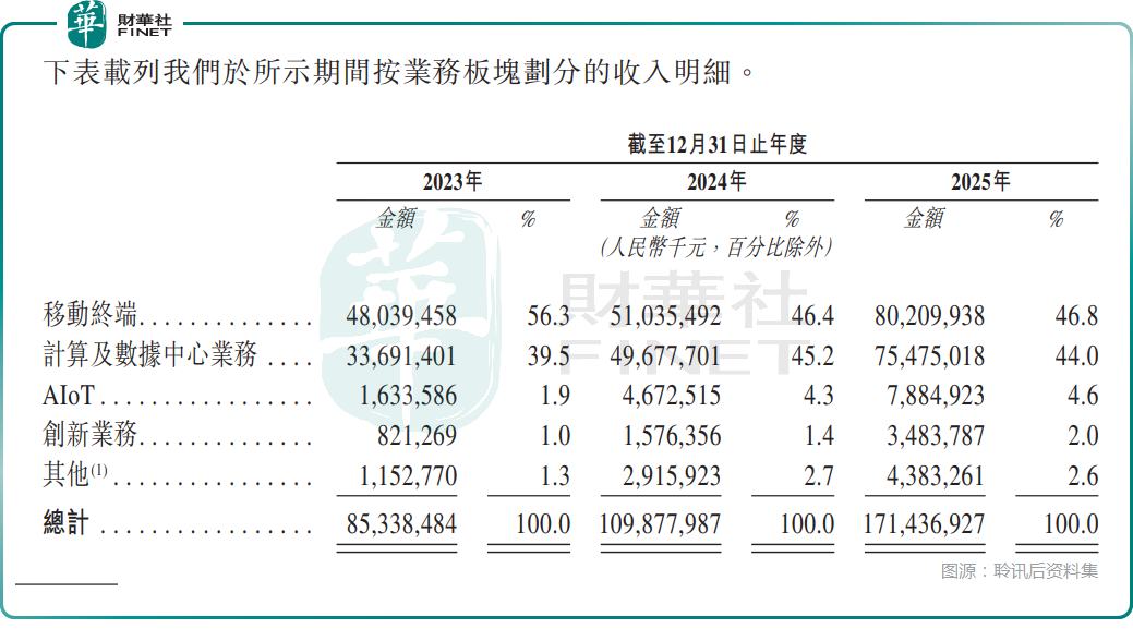 此外,AIoT业务、创新业务也迎来持续增长,至2025年收入占比分别提升至4.6%、2.0%。