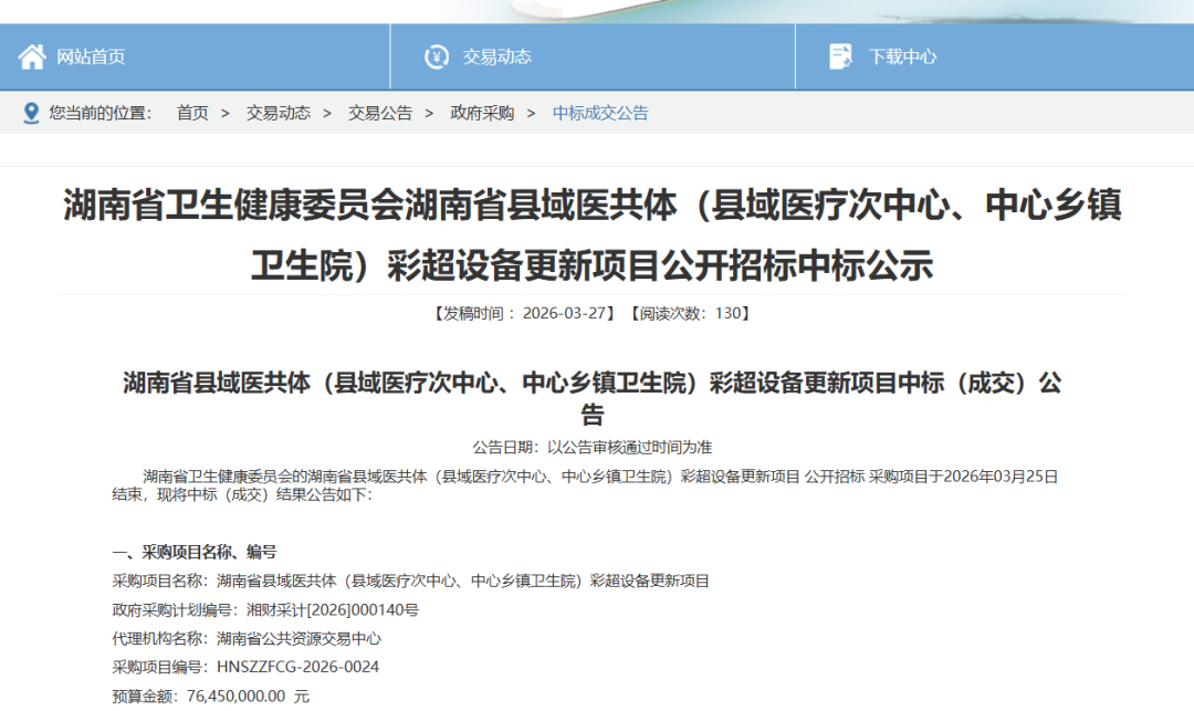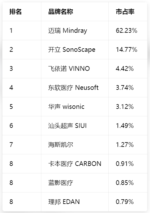 来源:器械之家,未经授权不得转载,且24小时后方可转载近日,湖南省县域医共体(县域医疗次中心、中心乡镇卫生院)彩超设备更新项目中标结果正式公布,本次项目共计采购139台彩超设备,项目初始预算总价达7645万元,最终由迈瑞、蓝影、开立三家企业中标,中标总价仅为1114万元,整体价格降幅高达85.43%,创下国内基层医疗设备集采的历史级纪录,被业内称为“价格战天花板”的集采。值得关注的是,近期众成医械也发布的2026年一季度超声市场报告显示,国产超声品牌实现全面突围,迈瑞、开立、飞依诺、东软四大国产品牌成功上榜,一季度合计市占率超35%。其中迈瑞以绝对优势领跑,彰显国产医疗设备的技术实力与市场认可度,国产替代进程持续加速。