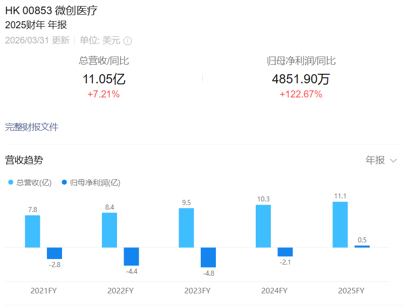 微创医疗 2025 年交出了一份里程碑式的成绩单,彻底终结连续五年亏损局面,财务基本面实现根本性好转。