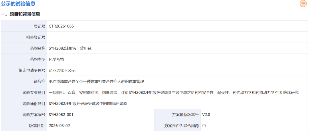 2026年1月,阿斯利康以12亿美元预付款+173亿美元里程碑引进石药集团的GLP-1/GIP月制剂SYH2082等长效化多肽产品。2026年3月底,石药集团已经启动SYH2082的国内一期临床试验。2026年2月,SYH2082的临床试验申请获得FDA批准。