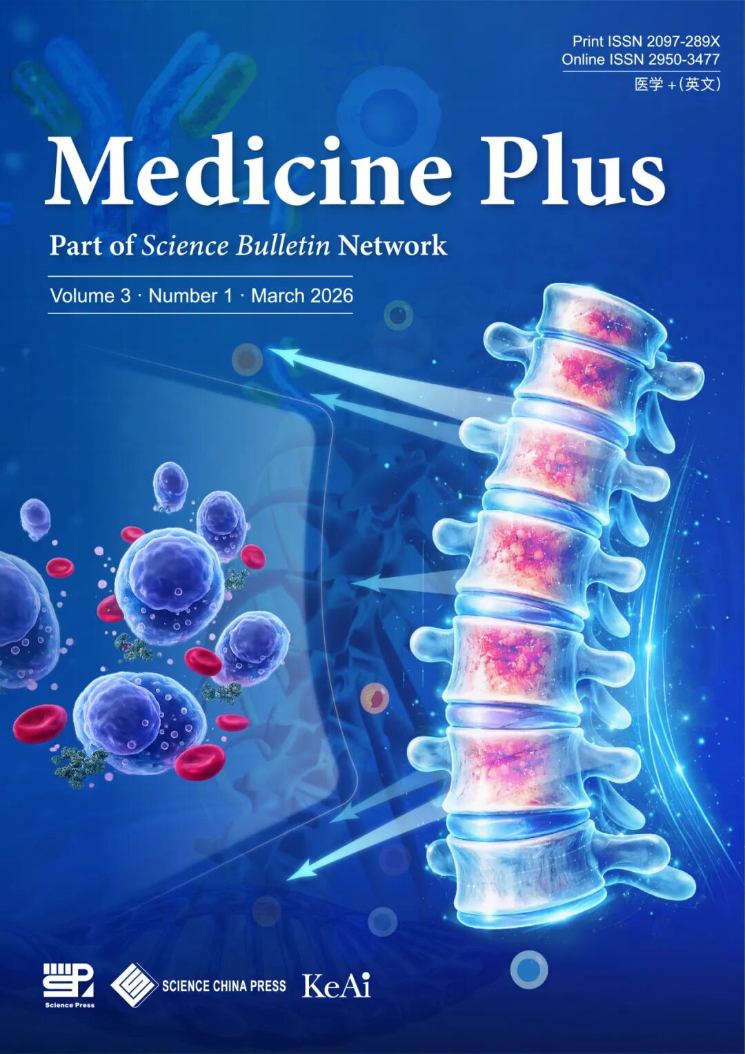 Medicine Plus是中国科学院主管,科学出版社主办,《中国科学》杂志社、科爱公司共同出版的国际综合医学英文期刊,季刊。2024年3月创刊,创刊主编为北京大学人民医院王杉教授。入选中国科协卓越行动计划高起点新刊、首都科技期刊卓越行动计划重点英文期刊,已被DOAJ、Scopus等国际知名数据库收录。期刊刊文范围涵盖医学科学的各个领域,致力于打造成为具有世界影响力的综合医学高端品牌,赋能全球医学创新,并促进学科交叉融合及成果转化。除Research Article、Review、Global Research Highlight、Commentary等常规栏目外,还设有Guideline and Consensus、Global Opinion两个特色栏目。目前实行免费OA出版政策。