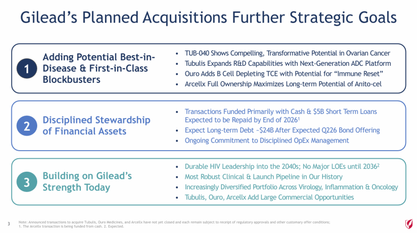 近50天来,吉利德陆续完成了针对Arcellx、Ouro、Tubulis的三笔并购交易,交易总金额高达约150亿美元。