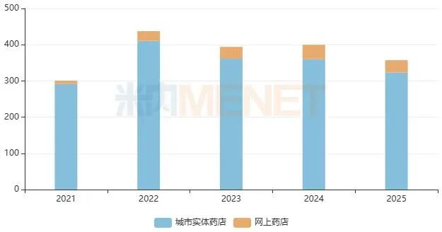 注:米内网《中国城市实体药店药品终端竞争格局》,统计范围是:全国所有地级及以上城市实体药店(不含县乡村实体药店);《中国网上药店药品终端竞争格局》,统计范围是:全国所有网上药店(B2C);上述销售额以产品在终端的平均零售价计算。如有疏漏,欢迎指正!