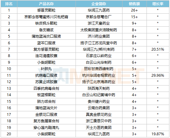 TOP20出炉!20亿感冒药称王,华润三九5大品牌亮眼