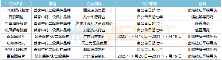 2025年至今获批的中药保护品种(呼吸系统中成药)