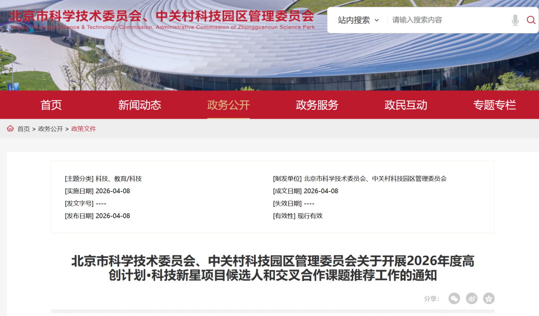 2026年度北京科技新星申报启动!