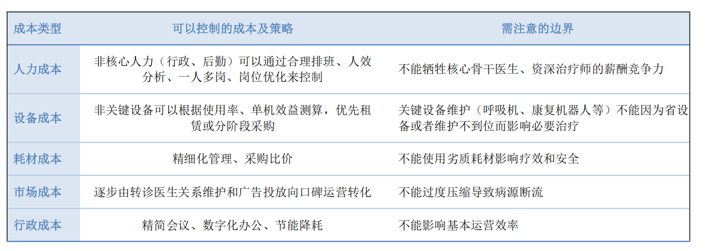 康复医院必须明确区分“需要控制的成本”与“不可削减的成本”,并清晰把握可控成本的边界: