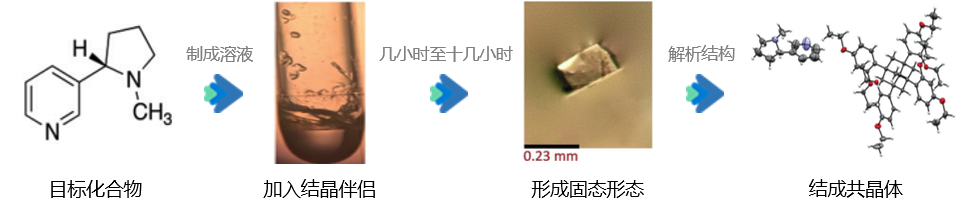 共晶剂添加法是引入一种结构已知、易于结晶的“伴侣分子”作为共晶剂,让它和目标化合物通过分子间相互作用结合。 原本无序、无法结晶的油状分子,会跟着共晶剂一起有序排列,形成稳定的共晶,长出符合检测要求的高质量单晶。[3]