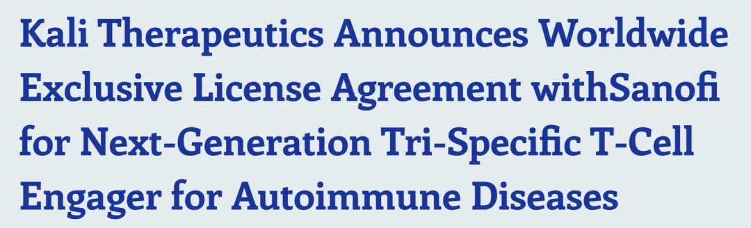 3月23日,Kali Therapeutics宣布已就一款三特异性抗体(KT501)与赛诺菲达成一项许可协议。根据协议条款,赛诺菲将获得
