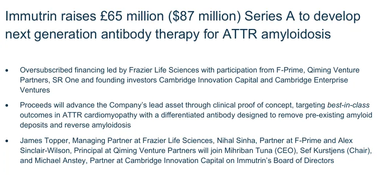 https://www.biospace.com/press-releases/immutrin-raises-65-million-87-million-series-a-to-develop-next-generation-antibody-therapy-for-attr-amyloidosis