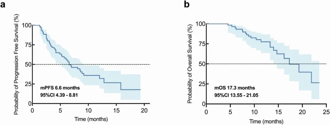 中位无进展生存期为6.6个月,中位总生存期达到17.3个月,一年总生存率为77.6%。