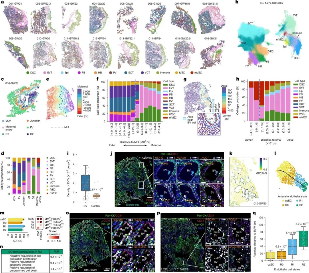 研究最终获得了超过19万个细胞的配对多组学数据,以及来自16个样本、总计约110万个细胞的空间转录组图谱。这种“多维”技术组合,使科学家们能够以前所未有的精度,在保留细胞原生空间位置的同时,解析其基因表达、染色质开放状态和蛋白表达信息,真正实现了对母胎界面的“细胞级”时空解剖。