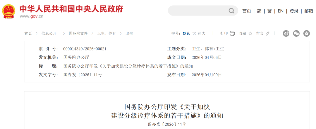 国务院办公厅印发《关于加快建设分级诊疗体系的若干措施》的通知