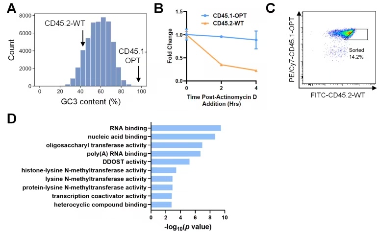 首先,该团队进行了全基因组CRISPR筛选,以识别调节密码子依赖性基因表达的因子,这使他们鉴定出RNA结合蛋白DHX29是密码子依赖性基因表达的核心调节因子。随后,他们利用RNA测序分析了整体的mRNA表达,观察到该蛋白的缺失会导致富含非最优密码子的mRNA上调。