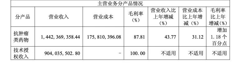 诺诚健华2025年业绩实现爆发式增长,营收23.75亿元,同比增幅达135.27%;归母净利润6.42亿元,同比扭亏为盈。抗肿瘤类药物为其核心营收支柱,2025年实现收入14.42亿元,同比增长43.77%,该产品毛利率达87.81%,同比增加1.18个百分点,盈利质量持续改善。